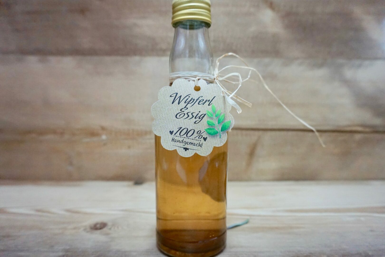 Dieser verschiedenen Baumwipferln verfeinerte Essig wird von Tanja Huttegger aus Rohrbach-Berg mit Liebe handgemacht!