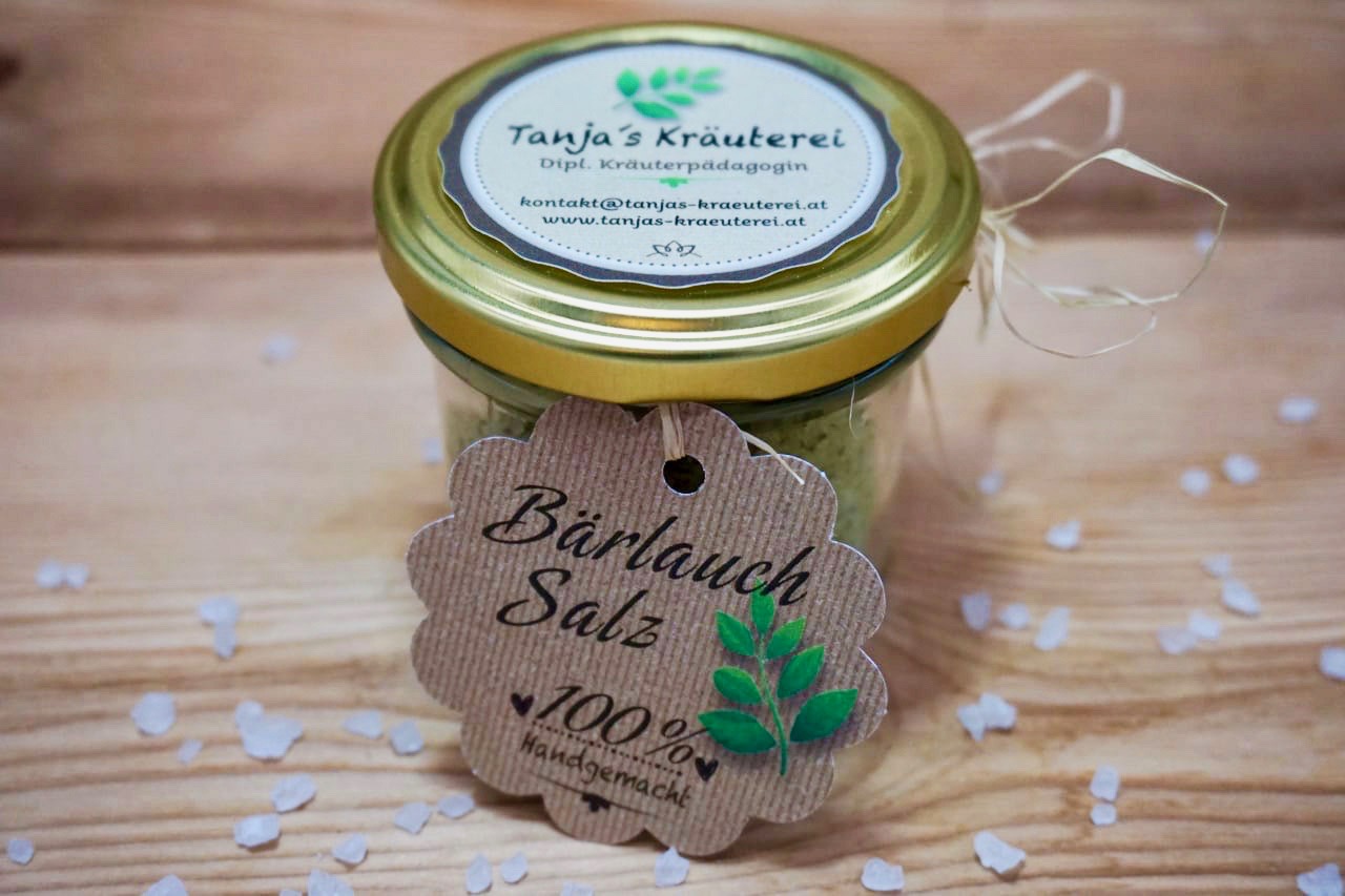 Das is‘ drin: Bärlauch, Salz; mit Liebe handgemacht.